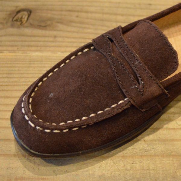 カラーは人気のブラウン、シンプルなデザインのローファーです。