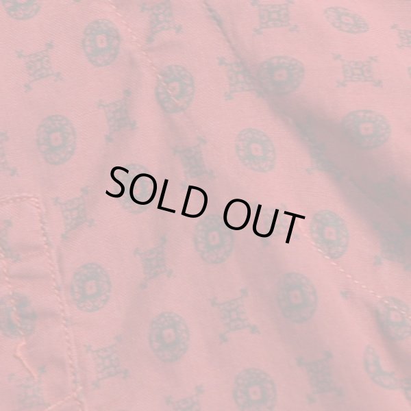 カラーはワインレッド、小紋柄がプリントされた一枚。