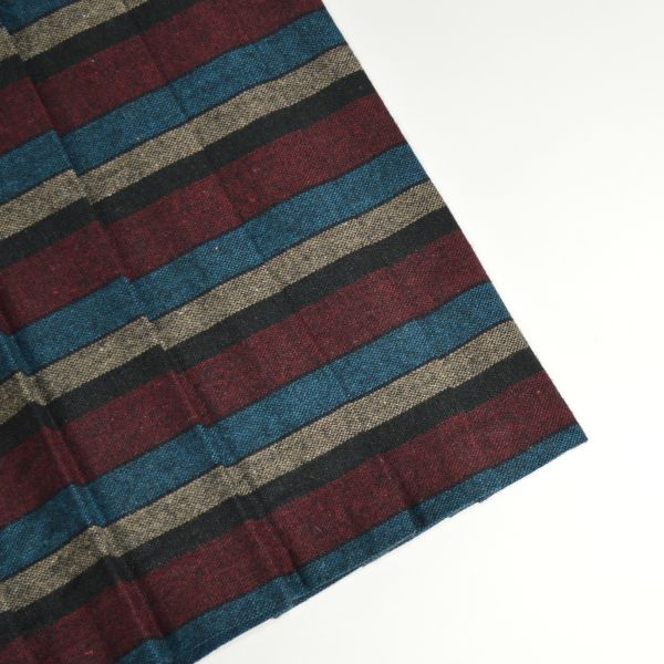 カラーはワインレッド/ブルー/ブラック系のボーダー柄。