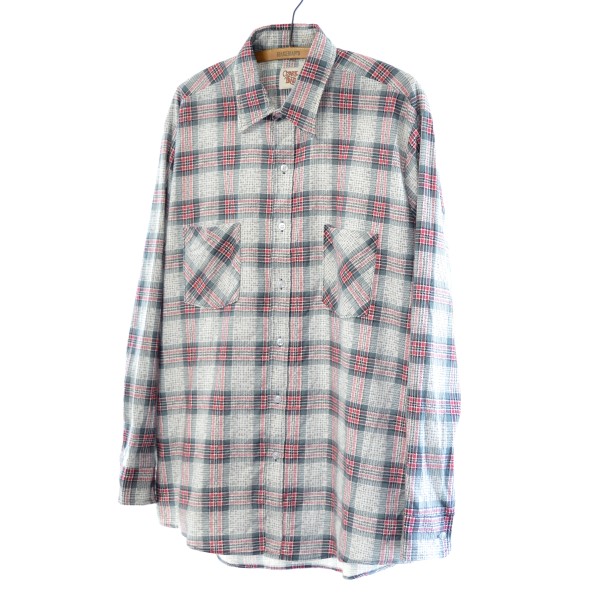 商品説明 80年代頃のOZARK TRAILのプリントネルシャツです。 カラーはホワイト/グレー/レッドのチェック柄。 うれしいアメリカ製、100%コットンのネルシャツ。 コンディションはデッドストックをワンウォッシュした状態です。 フロント第2ボタン下に縫製時につけられた印跡が見られます。 特にダメージはありません。 ■ ブランド : OZARK TRAIL ■ カラー : ホワイト/グレー/レッド ■ コンディション : A ■ 素材 : 100% コットン ■ 生産国 : アメリカ ■ サイズ : 表記 Lサイズ (大きめ) (メンズ) (下記実寸参照) ■ 実寸値 : 肩幅 50.5cm , 身幅 120cm , 着丈 81cm , 袖丈 64cm