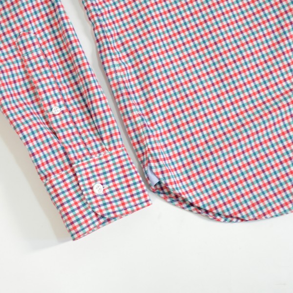 商品説明 アメリカで仕入れましたジェイクルー社製のギンガムチェック ボタンダウンシャツです。 カラーはホワイト/ネイビー/レッド/グリーン。 裾のサイドや袖内側のパイピングに別布を使った良いデザインの一枚です。 コンディションはあまり使用感もなく、特に目立ったダメージもありません。 ■ ブランド : J.CREW ■ カラー : ホワイト/ネイビー/レッド/グリーン ■ コンディション : A ■ 素材 : 100% コットン ■ 生産国 : モーリシャス ■ サイズ : 表記 Mサイズ (メンズ) (下記実寸参照) ■ 実寸値 : 肩幅 46cm , 身幅 109cm , 着丈 76cm , 袖丈 65.5cm