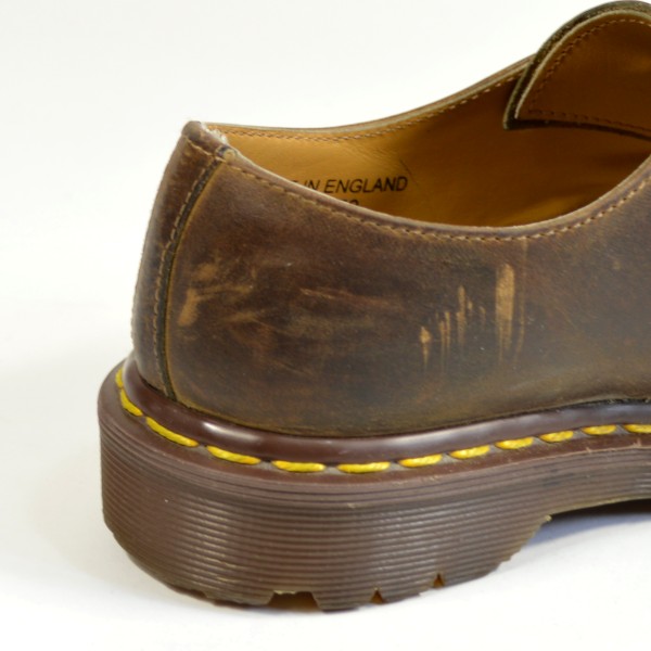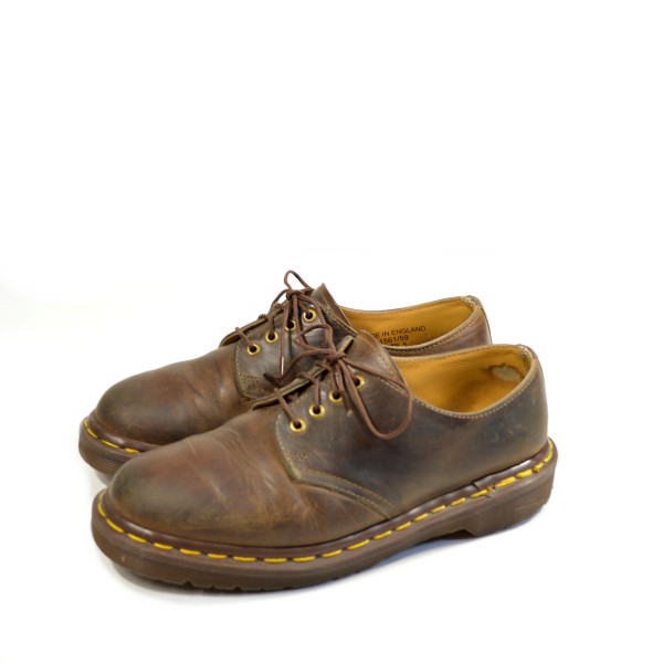 商品説明 アメリカで仕入れましたドクターマーチン社製の4ホールブーツです。 カラーはブラウン、人気のローカット、うれしいオールドのイングランド製の一足です。 コンディションは両足甲に履きしわ、両足トゥに細かなキズや擦れが見られます。 両足かかと部分全体に細かなキズや擦れ、色はげ等見られます。 左足サイド内側にレザーのキズが見られます。 両足インソールに使用感、両足アウトソールかかと部分に減りが見られます。 靴ひもがオリジナルではありません。 右足かかと履き口部分に一部ステッチ外れ、内側のレザーの剥がれが見られます。 中古のシューズですので全体に使用感や細かなキズ、レザーの擦れや うす汚れ、レザーの変色等見られます。 どれも使用には問題ありませんが、上記コンディションをご理解の上ご検討ください。 ■ ブランド : Dr Martens ■ カラー : ブラウン ■ コンディション : C ■ 素材 : レザー ■ 生産国 : イングランド ■ サイズ : 表記 UK5 (約 24cm) (レディース) (下記実寸参照) ■ 実寸値 : 全長 27cm , 最大幅 10cm , 高さ 9cm