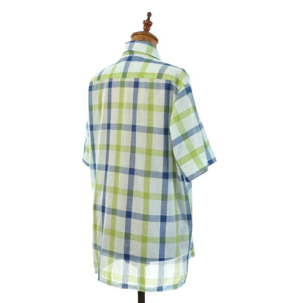 商品説明 アメリカで仕入れました70年代頃のPar Elegance製のチェックシャツです。 シャツの形は開襟ループボタン、裾はボックス、 胸のポケットは両側のフラップなし。 コンディションは全体に着用感が見られます。 古着にご理解のある方なら、気にならない程度の コンディションかと思います。 その他の詳しいコンディションは詳細画像にて記載しておりますので、 必ず詳細画像をご確認くださいますようお願いいたします。 ■ ブランド : Par Elegance ■ カラー : ライトブルー/ネイビー/グリーン系 ■ コンディション : B ■ 素材 : 50% コットン、50% ポリエステル ■ 生産国 : 表記なし ■ サイズ : 表記 Mサイズ (15-15 1/2) (メンズ) (下記実寸参照) ■ 実寸値 : 肩幅 45.5cm , 身幅 113cm , 着丈 71cm , 袖丈 24cm